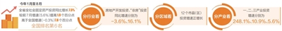 分产业看,一、二、三产业投资增速分别为248.1%、10.9%、5.6%。其中,金融业同比增加423.1%,租赁和商务服务业同比增加38.9%,交通运输、仓储和邮政业同比增加26.1%,文化、体育和娱乐业同比增加22.2%,制造业同比增加11.7%。