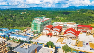 9月23日,俯瞰位于琼中黎族苗族自治县县城玉锦大道的县新中医院项目一期,工程主体已经完工。