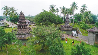 美榔双塔系元代古塔,俗称“姐妹塔”。姐塔呈六角形,原为7层,现存6层,高17米。妹塔呈四方形,7层,高13米。