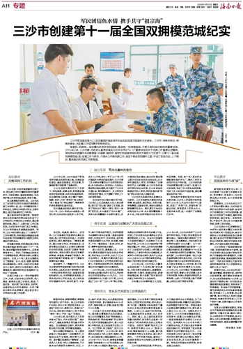 三沙市委、市政府高度重视双拥工作,把双拥工作作为履职和使命的重要抓手,与政权建设、基础设施建设、生态保护等工作有效结合起来,常抓不懈。