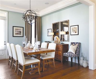 根据自己的爱好和居住环境,通过餐厅装饰来营造自己喜欢的环境。例如特色装饰画、记录美好生活的照片等,让家人在轻松温暖的氛围中用餐。不过,餐厅和家中其他场所相比,应更加注重空气流通和环境整洁,不可放置太多的装饰品。