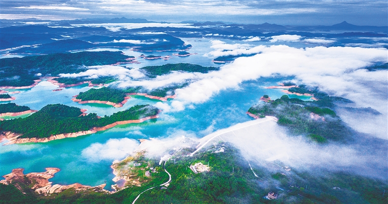 9月25日上午,航拍松涛水库大坝除险加固工程。据了解,松涛水库除险加固工程为2018年我省重点解决的十座大中型水库除险加固工程之一,该工程总投资31641.25万元,经过近两年的紧张施工,工程质量和工程进度有条不紊进行,截至目前,已完成总投资的九成以上。特约记者 吴文生 摄