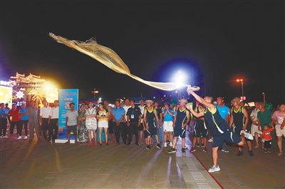 “加油!再加把劲!”临高皇桐镇村民吴兴隔着人群,冲着场内正在参加“旱地撒网”活动的同伴鼓劲。“这次活动的节目很特别,符合我们渔业大县特点,这次活动还增强了各镇之间的友谊,非常有意义。”吴兴告诉海南日报记者。