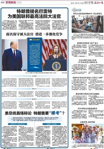 特朗普提名巴雷特 为美国联邦最高法院大法官