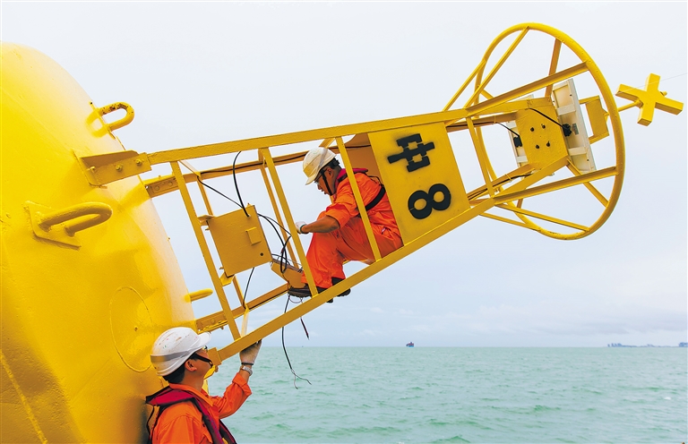 在过去18个月内,海口航标处组织对琼州海峡156座灯浮标上的遥控遥测设备统一更新升级安装了科技含量高的北斗系统。