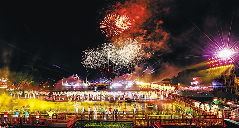 9月28日,演员在开灯仪式上表演歌舞节目。