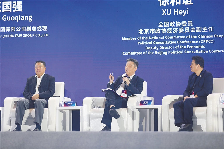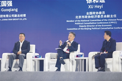 图❸ 9月29日,2020世界新能源汽车大会全体大会现场,嘉宾们探讨推动新能源汽车发展的创新方法。 本报记者 李天平 摄