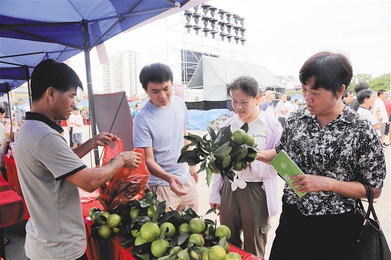 这么捧场的市民还不少——东方市委书记田丽霞在忙完公务后,也率东方市四套班子领导来到活动现场,走访各个展位,给企业农户的农产品点赞。在走访中,不少市领导纷纷拿出手机,扫码支付购买自己喜欢的农产品,用实际行动支持农业的发展。“东方不少农产品在省内甚至国内都小有名气,深受游客喜爱,要鼓励企业农户规模化规范化种养,一如既往保持产品的良好品质,不断擦亮东方的农业品牌。”田丽霞说。