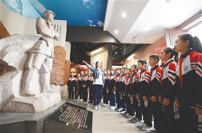 9月29日,火磨小学学生在晋冀鲁豫烈士陵园左权将军纪念馆参观。