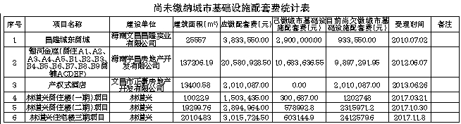 根据《海南省物价局 海南省财政厅 海南省住房和城乡建设厅关于调整城市基础设施配套费征收标准的通知》(琼价费管〔2010〕99号)和《文昌市人民政府关于调整城市基础设施配套费征收标准的通知》(文府〔2010〕42号)的规定,在2010年1月1日至2017年12月1日我局受理办理项目建筑工程施工许可证后尚有一小部分建设单位尚未按规定缴纳城市基础设施配套费。为做好城市基础设施配套费的追缴工作,现我局要求有关单位务必在2020年9月30日前缴清欠缴的城市基础设施配套费,款项转入下列账户: