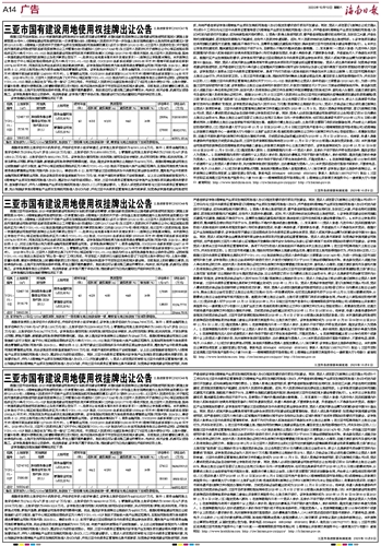 三亚市国有建设用地使用权挂牌出让公告