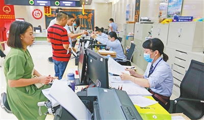 近日,在琼中黎族苗族自治县政务服务中心,工作人员认真为群众办理业务。