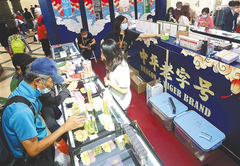 10月10日,顾客在2020中华老字号博览会现场购物。