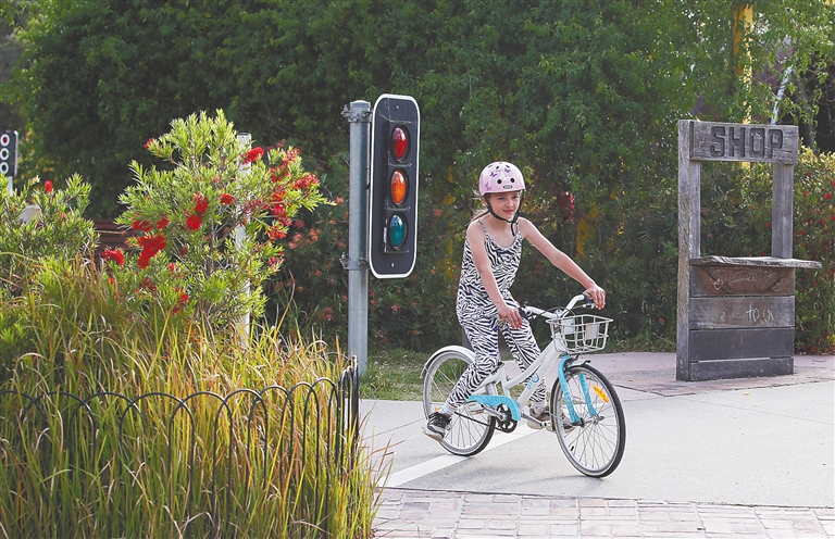 受疫情影响,越来越多的悉尼市民选择户外骑行运动。悉尼市政府在悉尼公园内打造了一条儿童专属骑行道路,让孩子们在更加安全的场地上享受骑行健身的乐趣。 新华社记者 白雪飞 摄