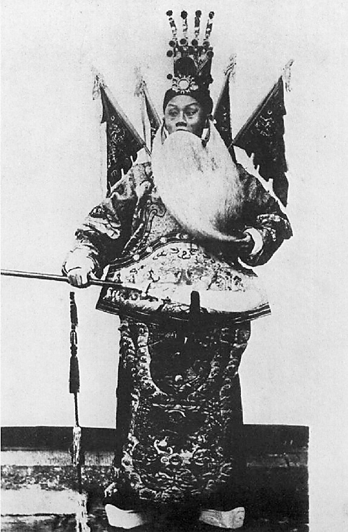 戏剧和电影,可以说是两种风格迥异的艺术形式,但是在中国,第一部电影居然是由戏剧演员领衔出演的,这位演员就是谭门巨擘谭鑫培。1905年,北京丰泰照相馆的老板任庆泰观看西洋电影后,想要拍摄一部中国人自己的电影。于是,他找到了当时已是花甲之年的谭鑫培,邀请其出演电影的主角。时值晚清,抱残守缺之风日盛,而锐意创新之举往往困难重重。但是,面对电影这种新生事物,当时已是京剧名角的谭鑫培并不保守。为了适应无声电影的艺术特点,他选取了传统剧目《定军山》中的“请缨”“舞刀”“交锋”等几个动作性较强的片段进行表演。影片《定军山》拍摄完成后被送至前门外闹市放映,据说一时间引发观影热潮。只可惜,这部中国电影史上的开山之作遗失已久,我们无法从银幕上一睹谭鑫培的舞台英姿。但是,仅从现存的剧照就能感受到其所扮演的黄忠老当益壮的精神,举手投足间,三国时的名将似乎又活转了过来。六十岁的谭鑫培与刚诞生的中国电影拥有不解之缘:正是有了谭鑫培这样的梨园老将开道,中国电影才能继承传统、开创辉煌。