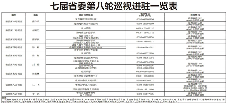 七届省委第八轮巡视进驻一览表