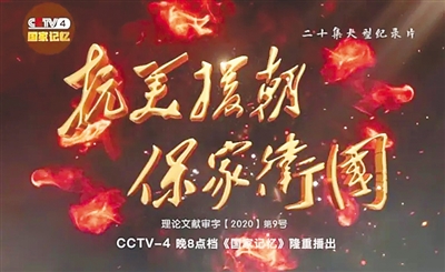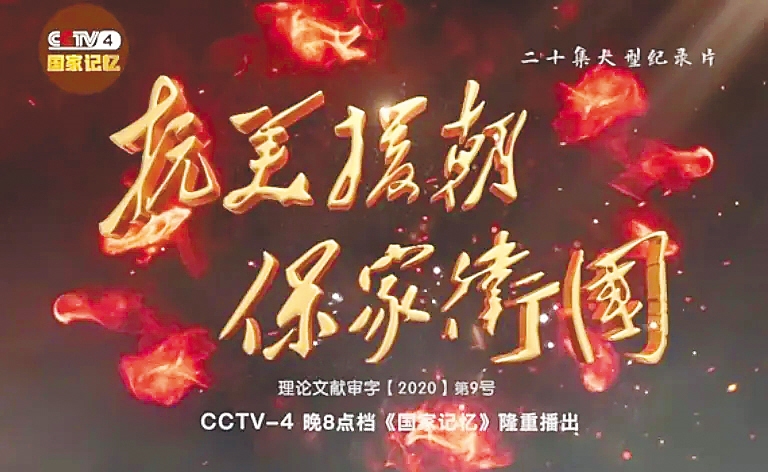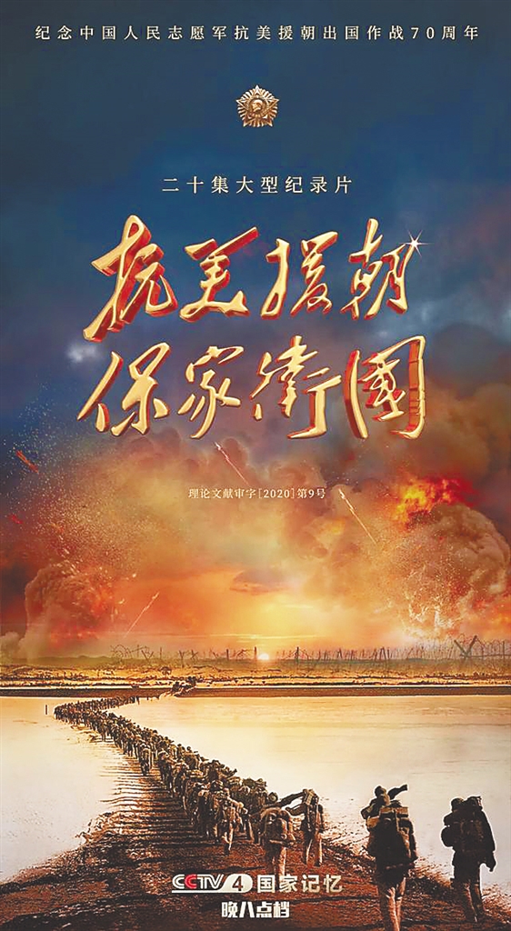 本报讯 为纪念中国人民志愿军抗美援朝出国作战70周年,中央广播电视总台《国家记忆》栏目摄制的20集大型纪录片《抗美援朝保家卫国》,10月12日起在CCTV-4晚8点档黄金时段连续播出。