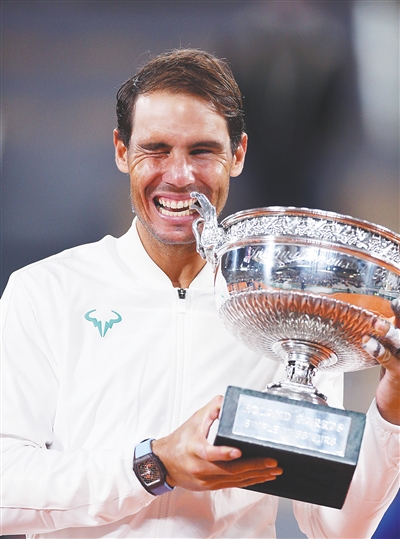 据新华社巴黎10月11日电 (记者肖亚卓)在11日举行的2020法国网球公开赛男单决赛中,“红土之王”纳达尔以6:0、6:2、7:5横扫头号种子德约科维奇,第13次在罗兰加洛斯加冕男单冠军,同时追平了瑞士人费德勒保持的20次大满贯夺冠的男子纪录。