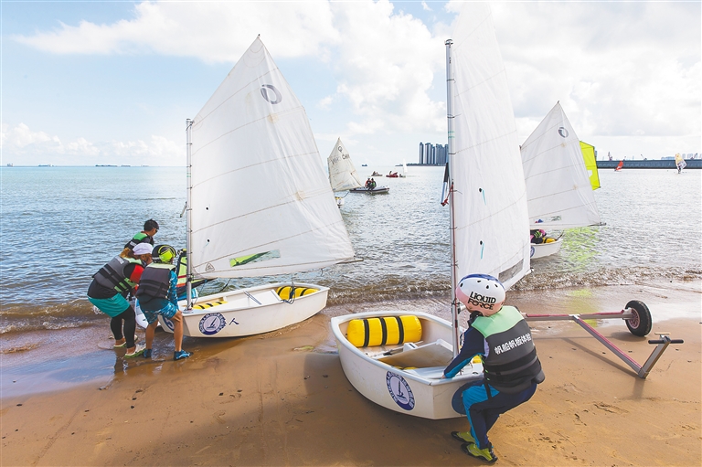 海口市教育局体育卫生和艺术教育科科长申群芳介绍,帆船帆板是综合性运动,不仅要求孩子们具备良好的体能和游泳技能,还考验孩子们的心理素质、对水文、天气等情况的掌握程度。“参加帆船帆板运动,在风浪中前行,他们最终的收获会很丰富。”
