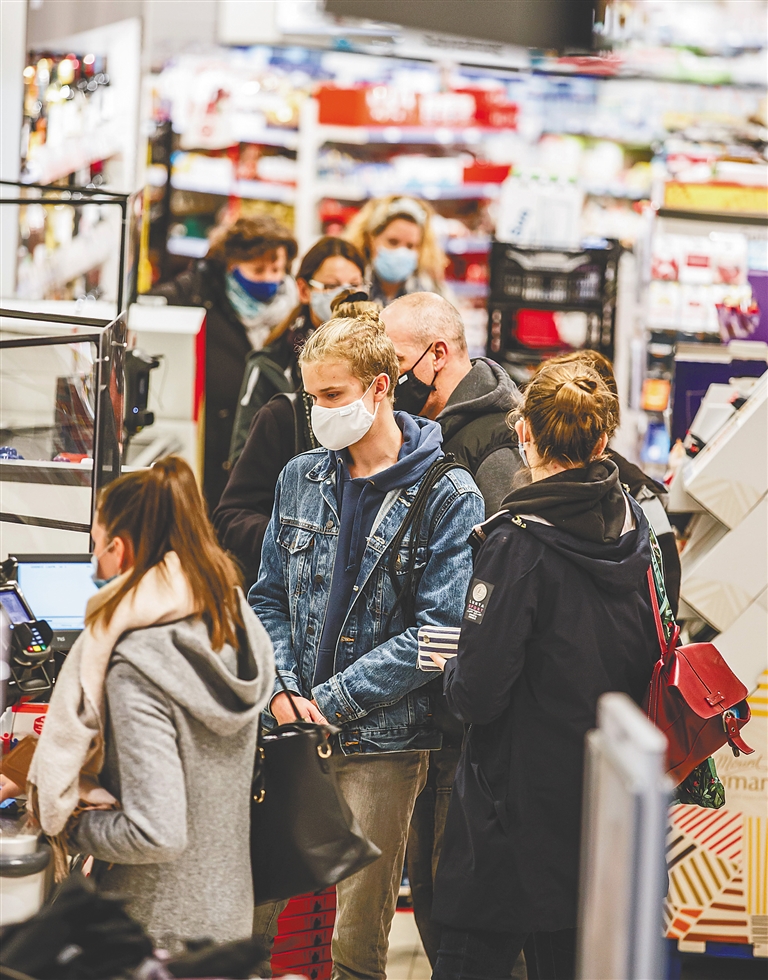 10月14日,柏林民众在一家商店排队。 新华社发
