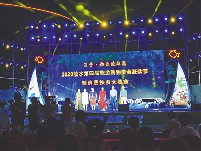 陵水还举办2020年芒果采摘节、荔枝文化节等活动和以“丰收陵水·共奔小康”为主题的2020年“中国农民丰收节”陵水系列活动,充分展现了陵水农业发展和脱贫攻坚取得的丰硕成果。举办2020陵水第四届旅游购物美食狂欢节暨消费扶贫大集市活动,集中展销了陵水的农特美食、旅游商品及11个乡镇的各类扶贫产品等。活动期间,开展“老字号嘉年华”暨陵水酸粉传统工艺展示,现场展示了陵水酸粉制作的全过程,同时邀请知名主播同步开展线上扶贫产品助销活动,有效激发本地居民和外来游客的消费欲望。