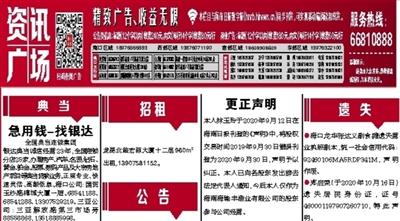 ●郑启荣(于2020年10月16日)遗失居民身份证,证号460001197907260710,特此声明。