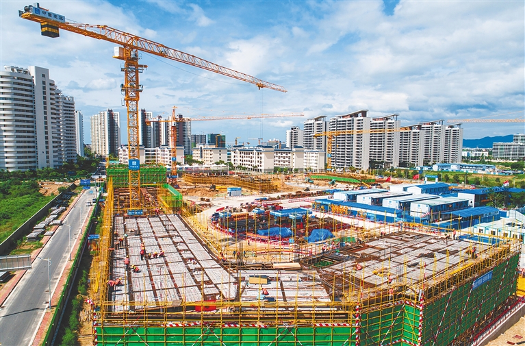目前,崖州湾科技城中学项目已基本完成地下部分施工,正在加速进行主体工程建设,预计明年8月竣工,明年秋季开学,将设初中部及高中部。据悉,崖州湾科技城学校、医院、安置区、商业区等基础和配套设施去年已全部开工建设。 本报记者 武威 摄