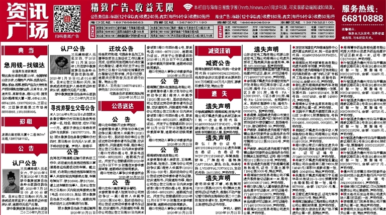 ●叶铱菡遗失儋州市白马井镇滨海新区海花岛2号岛292栋806房收据一张,票据编号:HHD5085074,金额:48728元。声明作废。