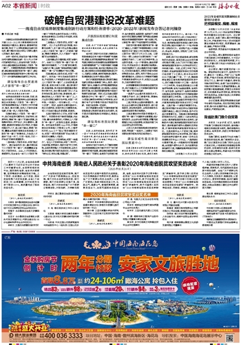 ~~~——海南自由贸易港制度集成创新行动方案和任务清单(2020-2022年)新闻发布会答记者问摘登