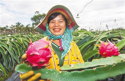以强村带弱村,一个产业辐射多个村庄。近日,笔者在夜间走访三亚、乐东、陵水等市县的火龙果基地,成片金黄的灯光好似“地上的星星”,它们正在给火龙果补光照。