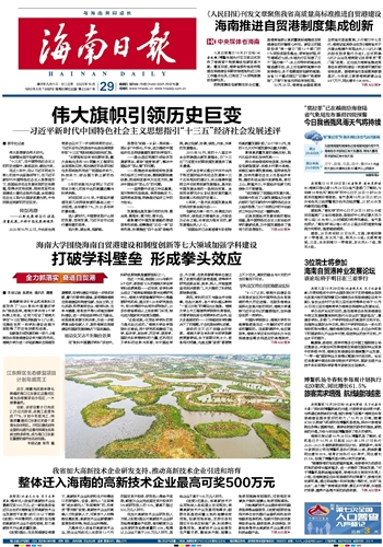 《人民日报》刊发文章聚焦我省高质量高标准推进自贸港建设~~~