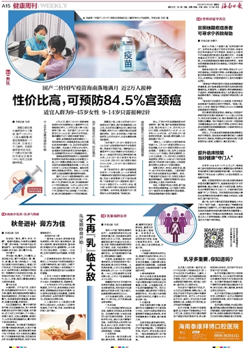 国产二价HPV疫苗海南落地满月 近2万人接种~~~适宜人群为9-45岁女性 9-14岁只需接种2针