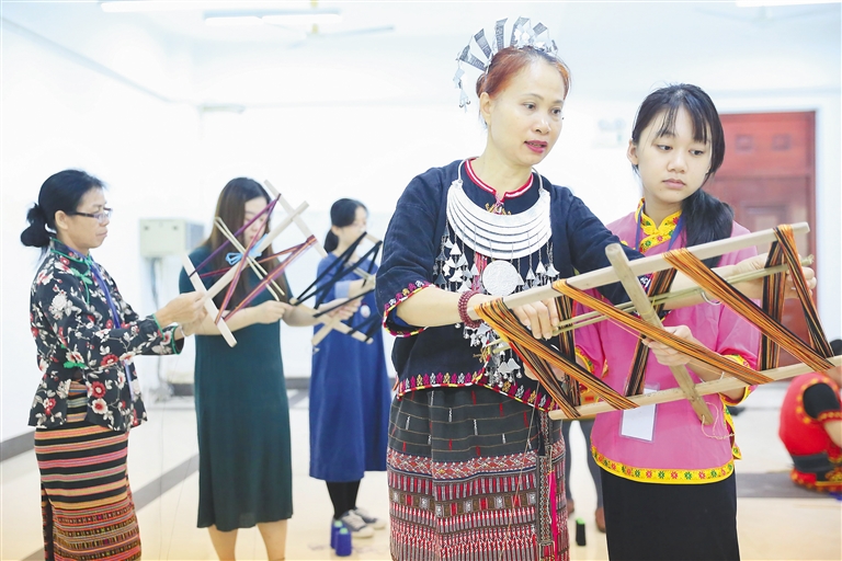 10月30日,在海南职业技术学院,参加中国非遗传承人群研培计划研修班的学员在学习黎锦技艺。