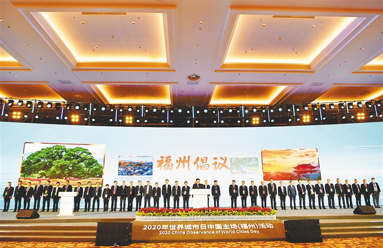 10月31日拍摄的2020年世界城市日中国主场活动《福州倡议》宣读仪式。