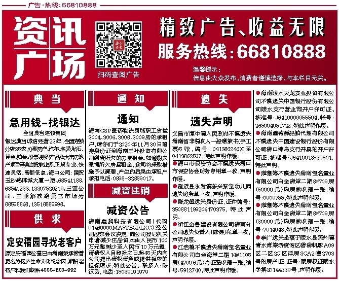 ●海南鑫德源船舶代理有限公司不慎遗失中国建设银行股份有限公司海口椰岛支行开具的开户许可证,核准号:J6410018539501,特此声明。