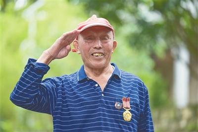 10月24日,得知记者要来采访自己,定安县国营金鸡岭农场罐头厂退休职工、83岁高龄的桂会山穿戴整齐,戴好纪念章,早早地站在位于金鸡岭农场十五队的家门口等候。