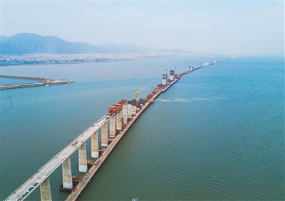 图为湄洲湾跨海大桥建设现场。 新华社发