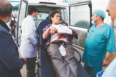 11月2日,在阿富汗喀布尔,一名伤者被送上救护车。