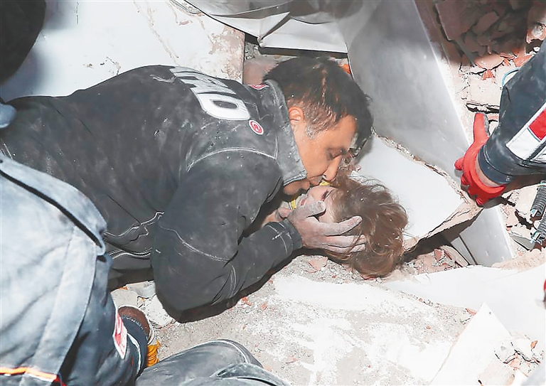 爱琴海地震90小时后,一名4岁女孩3日奇迹般从瓦砾中获救。