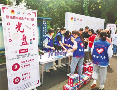 近日,海南日报记者在海南师范大学食堂窗口看到,不少学生告诉工作人员“菜的分量少一点”。在餐具回收处,文明督导志愿者接过学生们递过来的空盘,一一码放整齐……