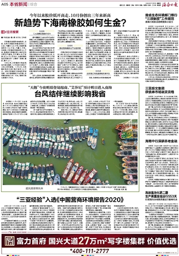 今年前三季度,海南全省农林牧渔业增加值832.55亿元,增长2.0%,增速快于整体经济,较上半年回升0.3个百分点。其中,橡胶产量增长2.6%。价格拉升,产量增加,在当前形势下,如何确保我省胶农增收,农业增效?