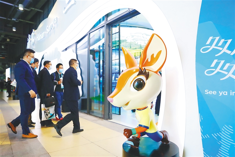 图③ 亚沙会吉祥物“亚亚”亮相三亚馆。