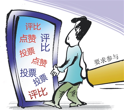 评比是为了评出优秀、树立榜样、奖励先进,发挥正向激励作用。发动网络评比可以倾听更多来自基层的声音,一定程度上体现出评比活动的公开透明。但是一些政府部门却把评比当“面子工程”,把是否胜出看成部门或地方的荣誉,为评比活动当“抬轿人”,使得评比活动异化为“人气比拼”“亲友团比拼”,而忽视了评比活动的公正性、严肃性和权威性,甚至助长弄虚作假不正之风,有损政府公信力。