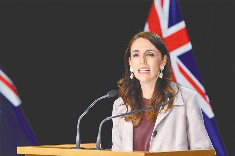11月6日,在新西兰首都惠灵顿议会大厦,新西兰总理杰辛达·阿德恩召开新一届内阁宣誓就职后的首次新闻发布会。