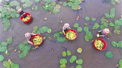 11月6日,嘉积镇的农民在采摘九品香莲。