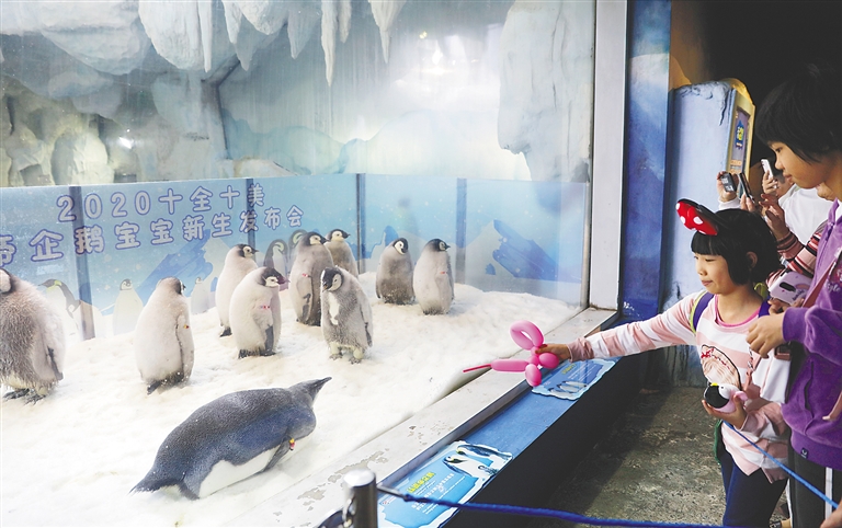 图为小朋友在观看今年繁育的帝企鹅宝宝。 新华社记者 黄国保 摄