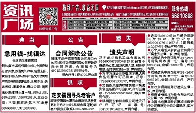 万宁东方锆钛工业有限公司 91469006735800471P因保管不善遗失公章、法定代表人章、财务专用章、合同专用章各一枚,声明作废。