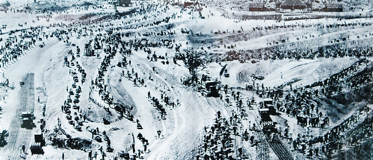 1958年7月8日,松涛水库第一期工程开始动工建设,当时正值新中国成立之初,国民经济困难,生产能力有限,生产工具落后,打隧洞、筑大坝,几乎全靠人力完成。