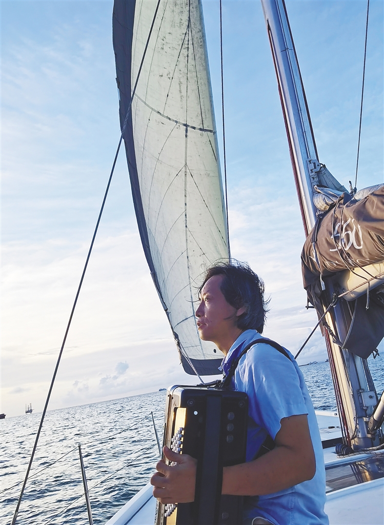 一个朗朗晴日里,林川把自己的舞台搬到了一艘船上。他穿着最普通的短袖衬衫和卡其色长裤,坐在高高的桅杆下,陶醉地拉起自己挚爱的手风琴。船上几乎没有听众,他在拉给无垠的大海听。