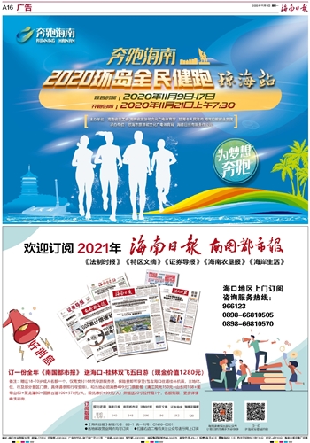 | 海南日报 广告 016 2020-11-091 2020年11月09日 星期一 |